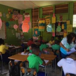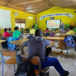 Children at St. Mary’s Preparatory School in Jamaica, learning the importance of kidney function and the impact of a healthy lifestyle as a means of preventing kidney disease.