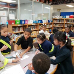 Fourth grade NSBE Jr. participating students at Pontiac’s Rogers Elementary were introduced to an interactive STEAM exercise, educating them about various engineering fields. The program highlighted the various ways that engineering was present in the fictional world of Wakanda as created for the movie Black Panther. A demonstration activity had students build boats that could float while carrying a load of the movie’s precious metal, vibranium (psst! they used pennies!)